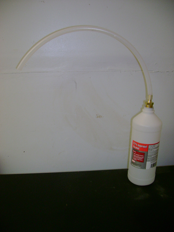 * Pour the 91% isopropyl alcohol from out of the bottle into another container, but keep the empty 91% isopropyl alcohol bottle, dry it out for 15 minutes or so in front of a hair dryer to get it completely dry.