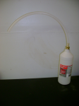 4. When done gassing (the bottle will be slighty warm to the touch still) screw the barb off the bottle, put the bottle under a sink faucet, have the faucet put out a skinny slow stream of water that will flow into the bottle's opening (once the barb is screwed off) and fill the bottle up to the top with cold water to stop the reaction from producing gas inside the bottle. Then simply walk the full bottle to the nearest toilet and empty the used contents of the bottle into it....flush the toilet....reuse the empty bottle, the same bottle can be used over and over for years.
