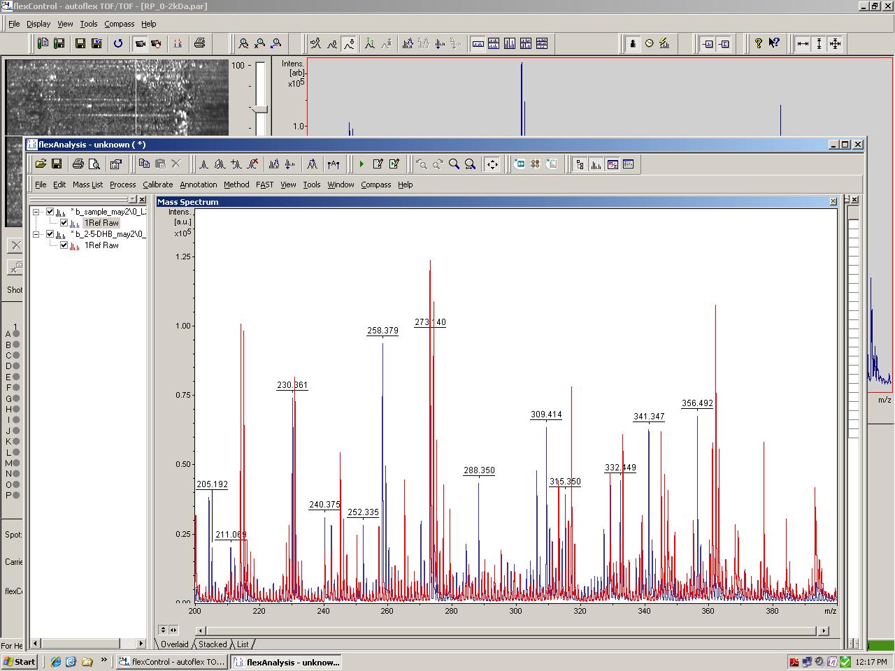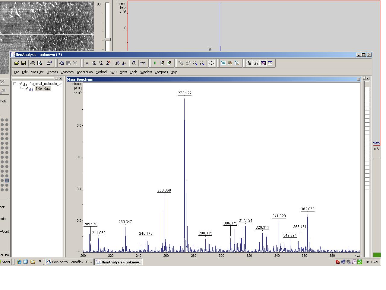 it appears degradation of the the sample has occurred; relative abundance for 258 has dropped considerably, and 273 has increased, from the run yesterday and the run today.