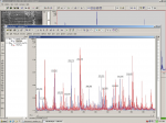 I loaded a couple spots on the plate with matrix only, shown in red, and matrix with sample, shown in dark blue.