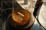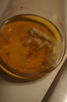 Solution was left for 10h while the color turned from slightly amber into a beautyful strawberry-red.