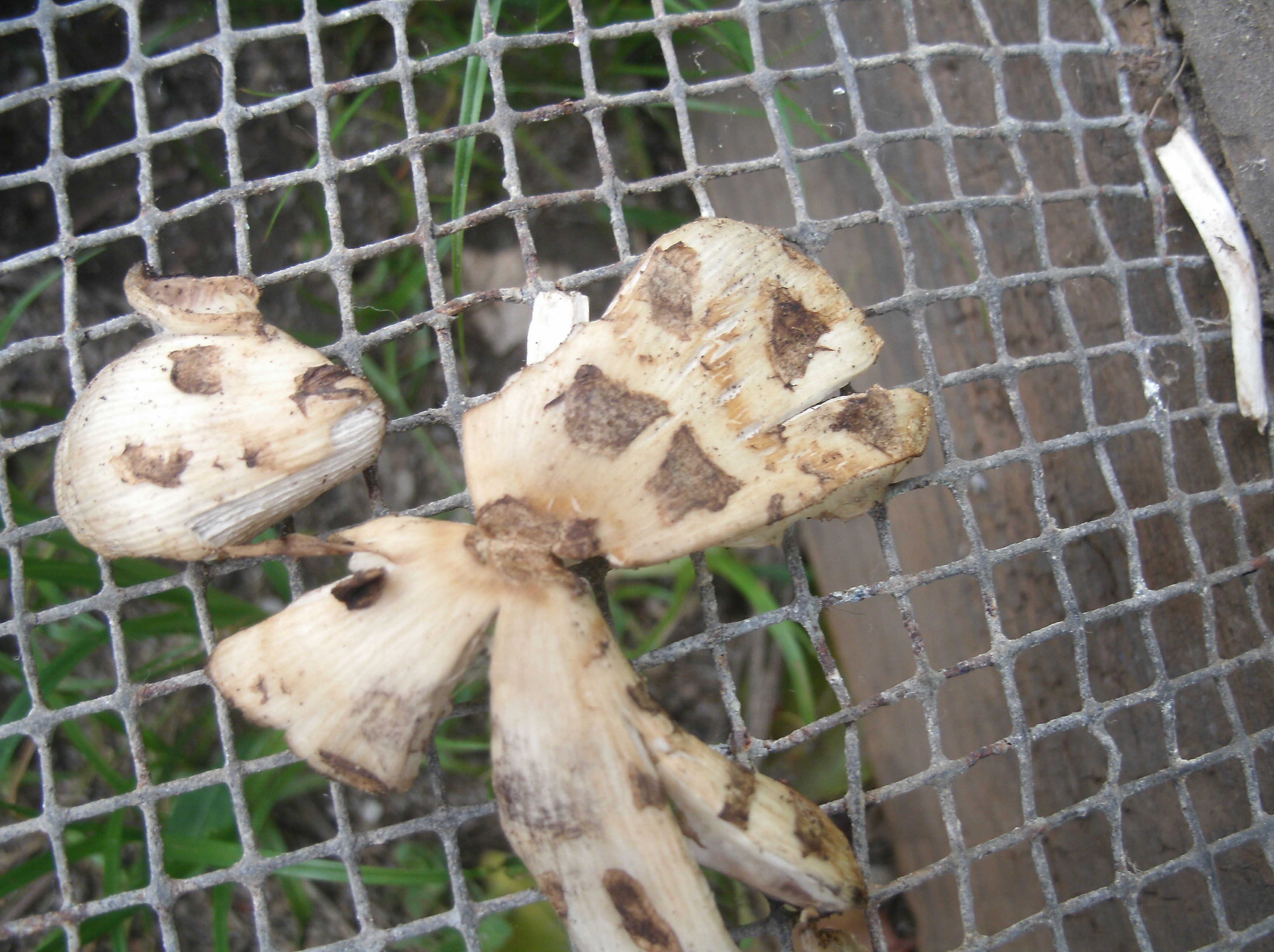Dig up the mushroom with a spoon or knife, don't yank it up or snap the caps off etc, unless it is a very distinct species you are harvesting, such as A.muscaria, I take the caps of these, and leave the stems, as I don't want anything but cap tissue for curing and drying, this however is a rare exception, for a very distinct species which grows in massive profusion where I make my annual harvest, with very specific habitat, and is specifically being looked for.