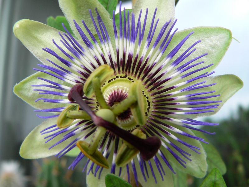 A shitload of herb, I can't see the second plant properly, it looks like either a non-flowering Narcissus, and the last is Passiflora caerulea.