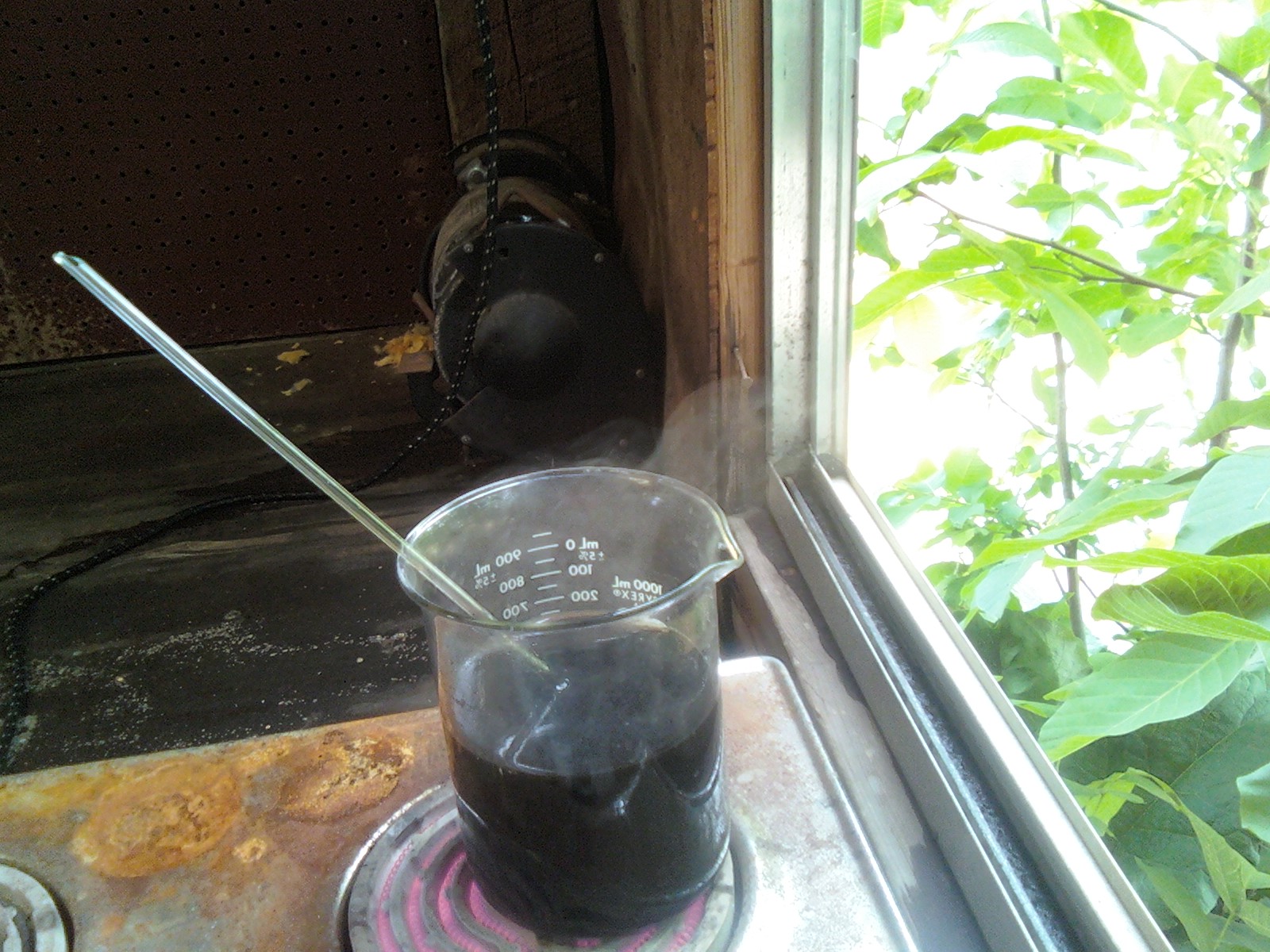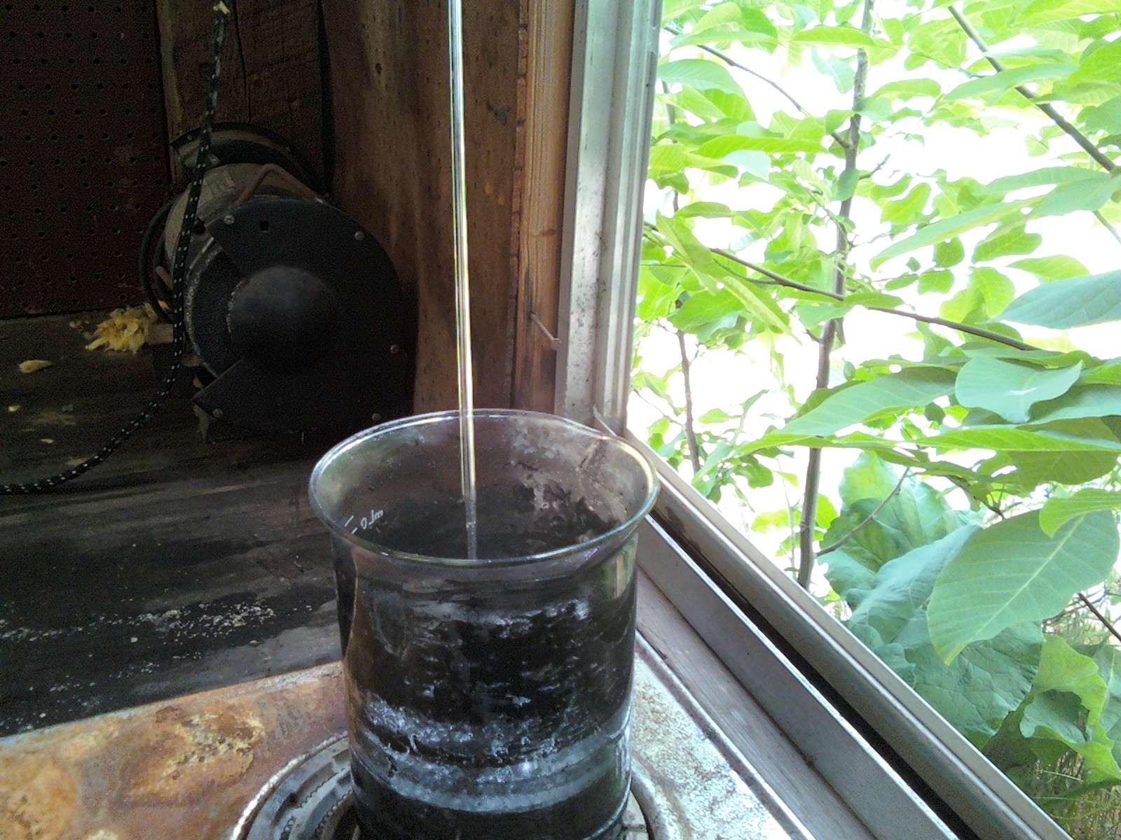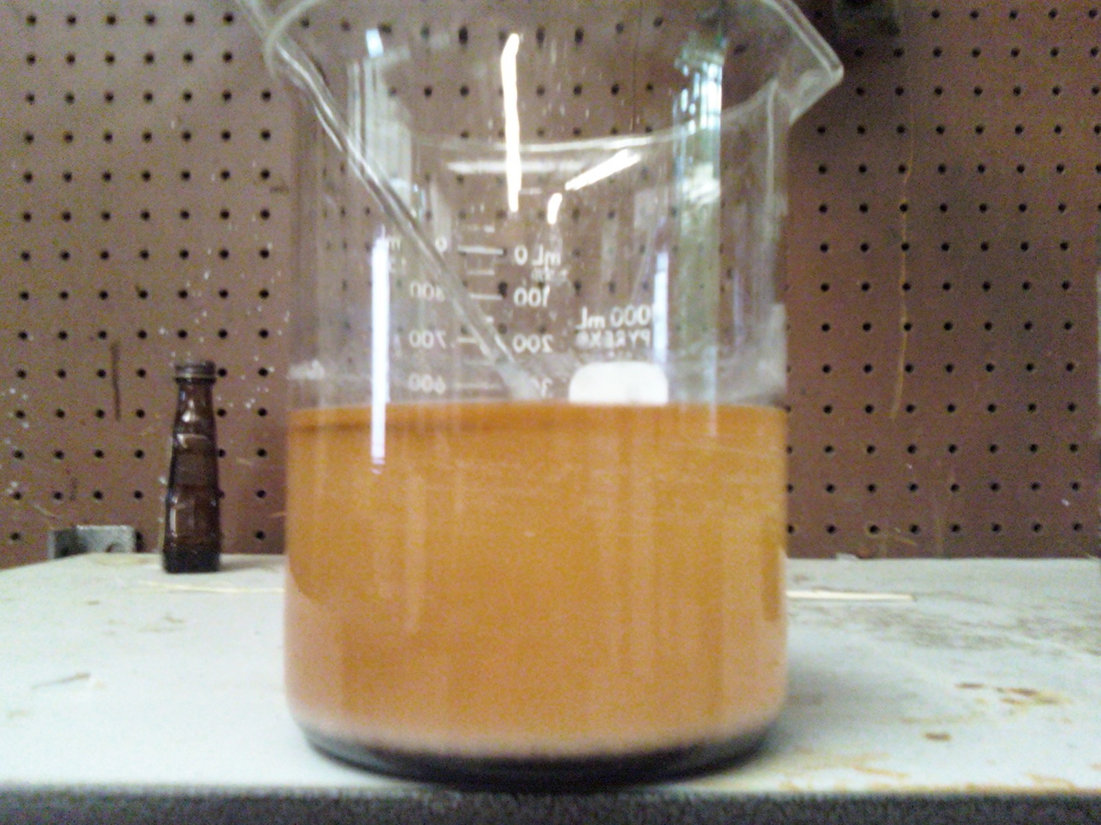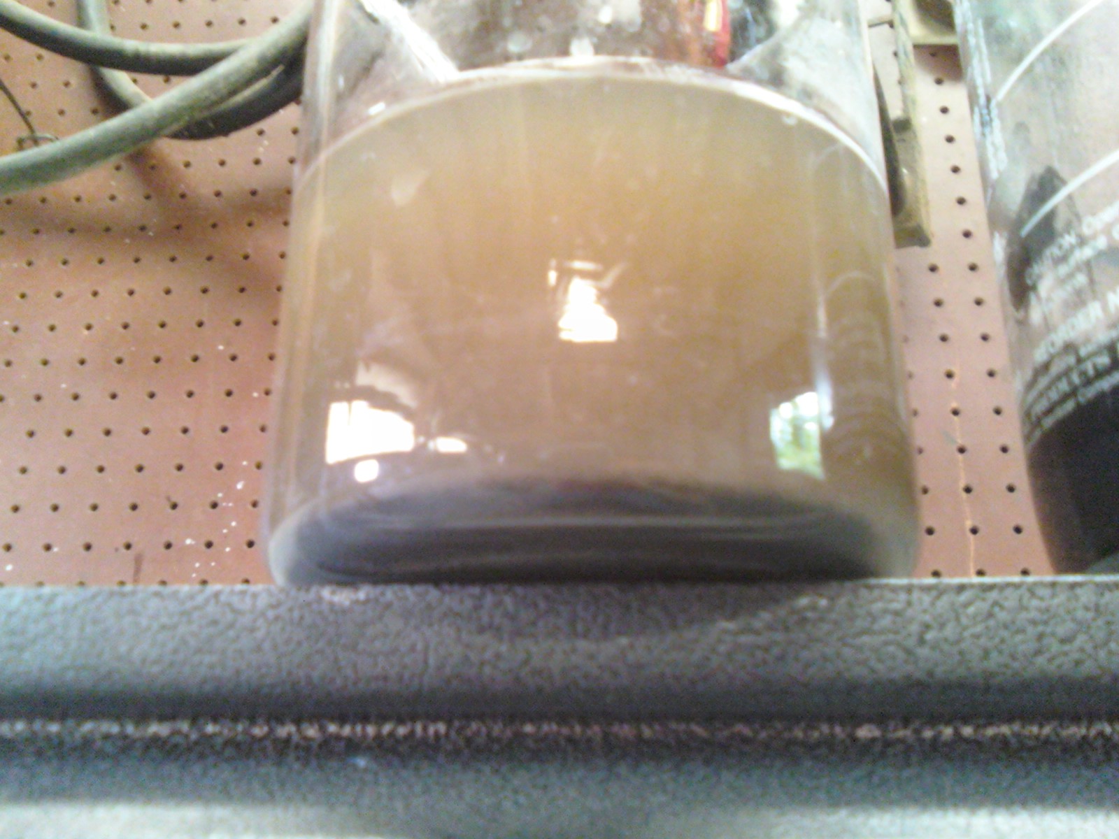The solution is sitting outside, about 1L worth, with the air still bubbling though it. I'll leave it till tomorrow or the next day to boil it a bit more to get some of the HCl, or chlorine out.