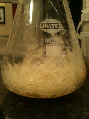 I had to recover some last night because I fucked up and didn't divide my molar ratio by two. Good thing the shit freezes super easy, way before water. Makes recovering it from solution easy as pie.