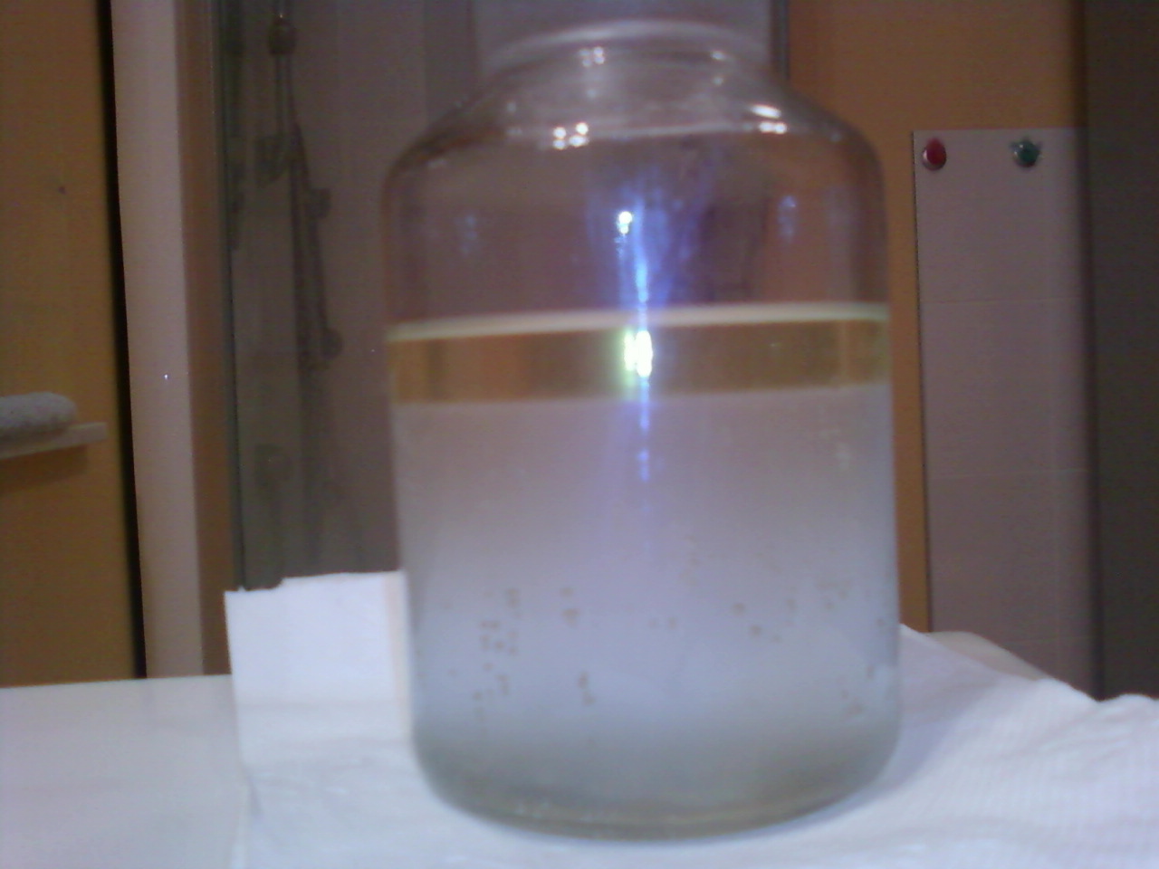 When mixing the two solutions, bubbles of isopropyl nitrite and something else appeared. It looked like mineral water