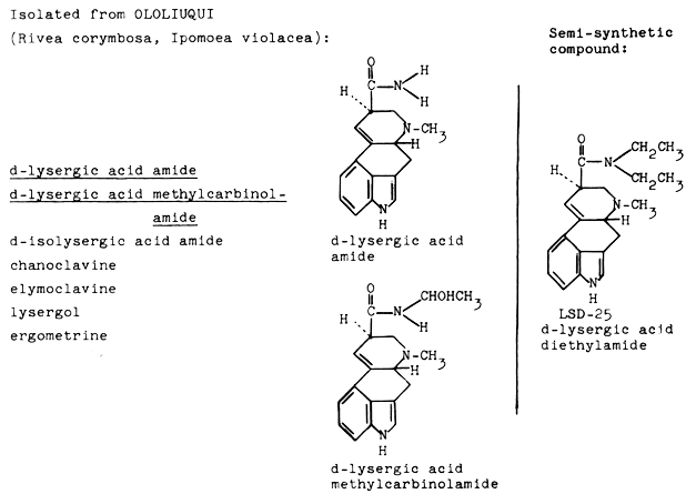 administration. Subcutaneous administrations of from 500 to 750 micrograms have been said to produce a state of apathy and sedation. Clinical studies with dosages of 500 micrograms i.m. were felt to be less effective than the control use of 100 micrograms of LSD. And yet, oral doses of twice this amount, 1.6 milligrams, have been said to produce a short-lived LSD-like effect with none of these negatives.