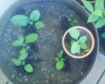 Nicotiana seeds are very fine and dust like, so spreading them out evenly rarely works out. When growing you may end up with multiple sprouts in a close area, it is to your discretion to remove the weaker and smaller to a new area or to simply rid yourself of them.