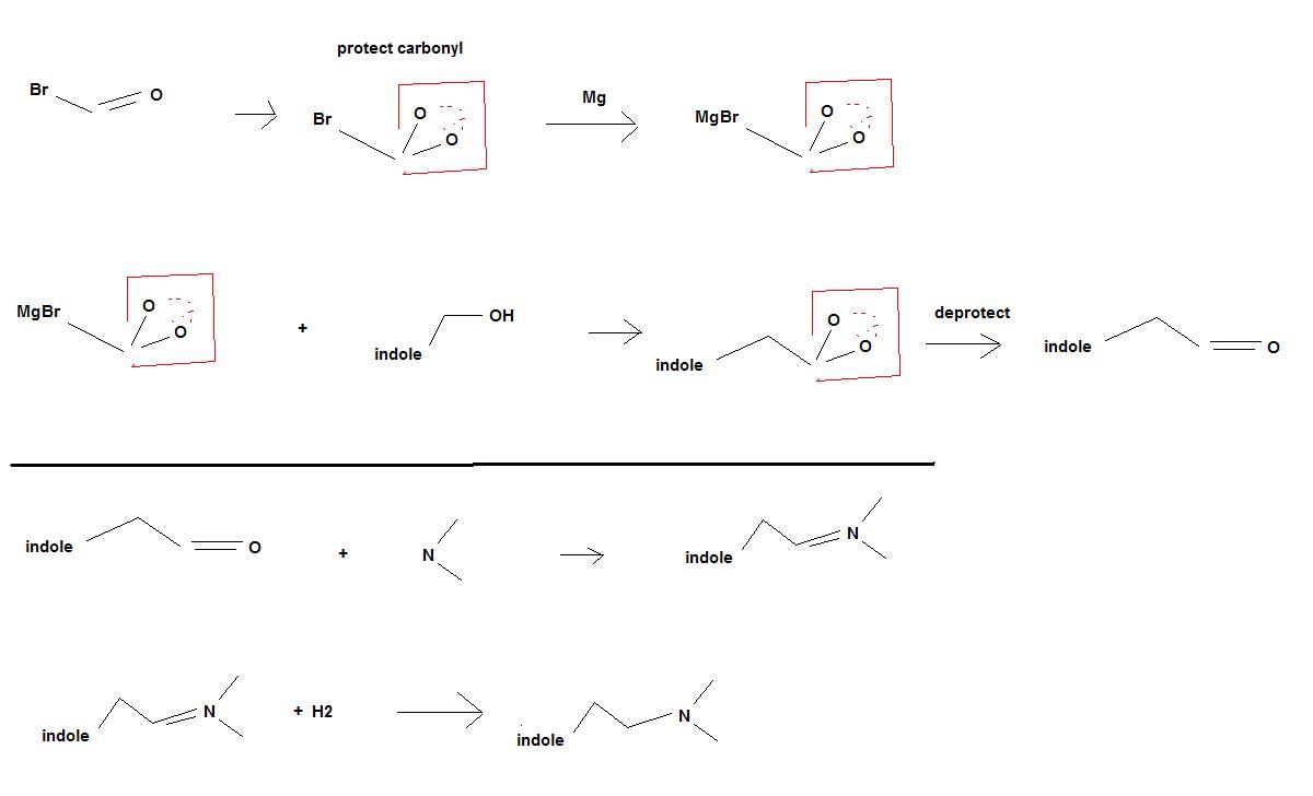 Also, the aldehyde protection method needs to be kept relatively inexpensive for this synthesis to be practical. I used the box to stand in place of some generic protection procedure.