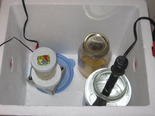 Once you have the water heater in the jar full of water in your cooler, you will need to cut a small hole in the bottom side of the lid, or top side of cooler to allow for the heaters cord to come out, but still allowing the coolers lid to close completely. This will make it easier to regulate the temperature.