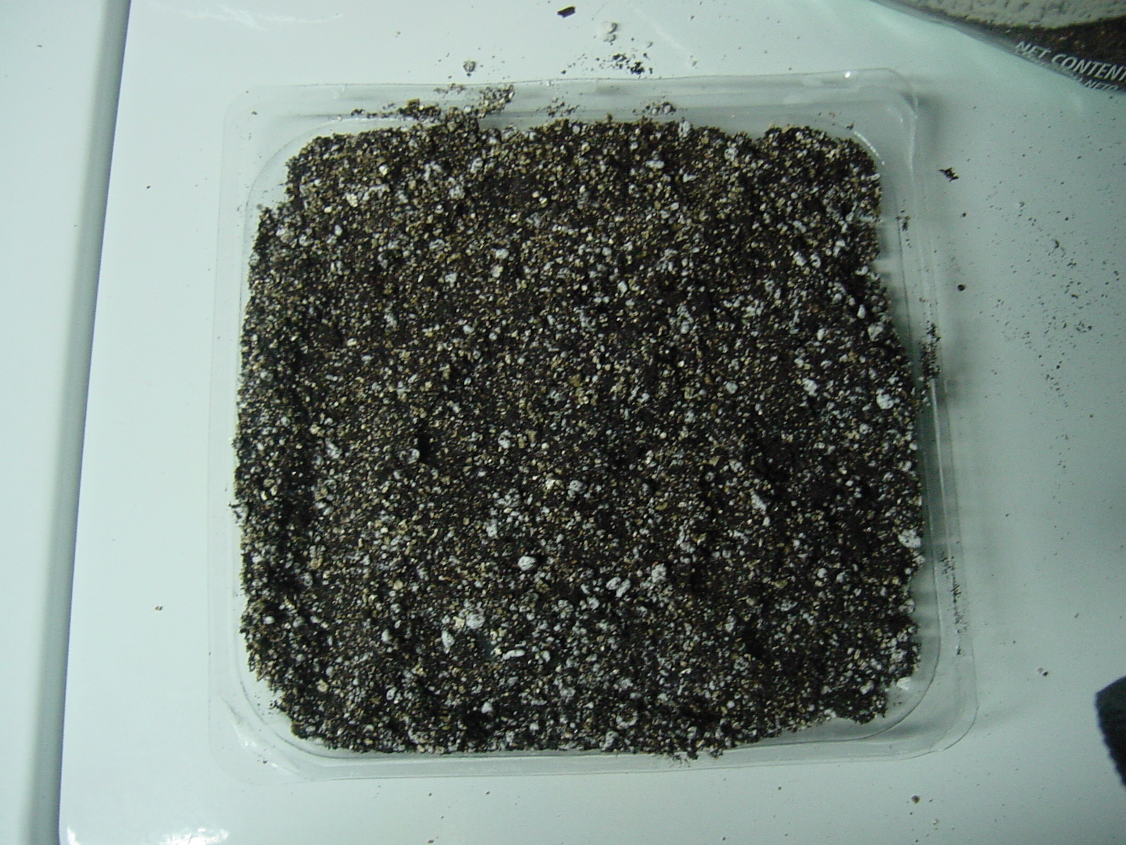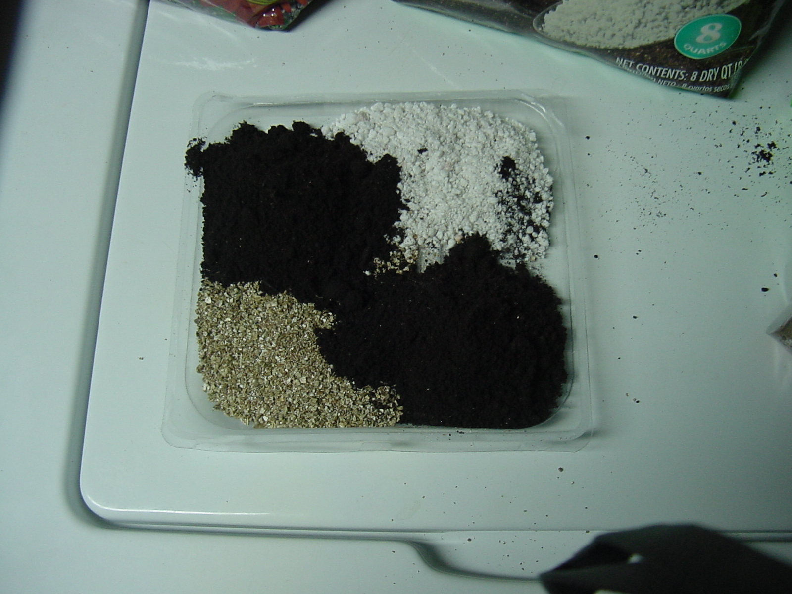 Now what I did was use the plastic tray to mix up 2 parts potting soil w/ 1 part vermiculite and 1 part perlite...