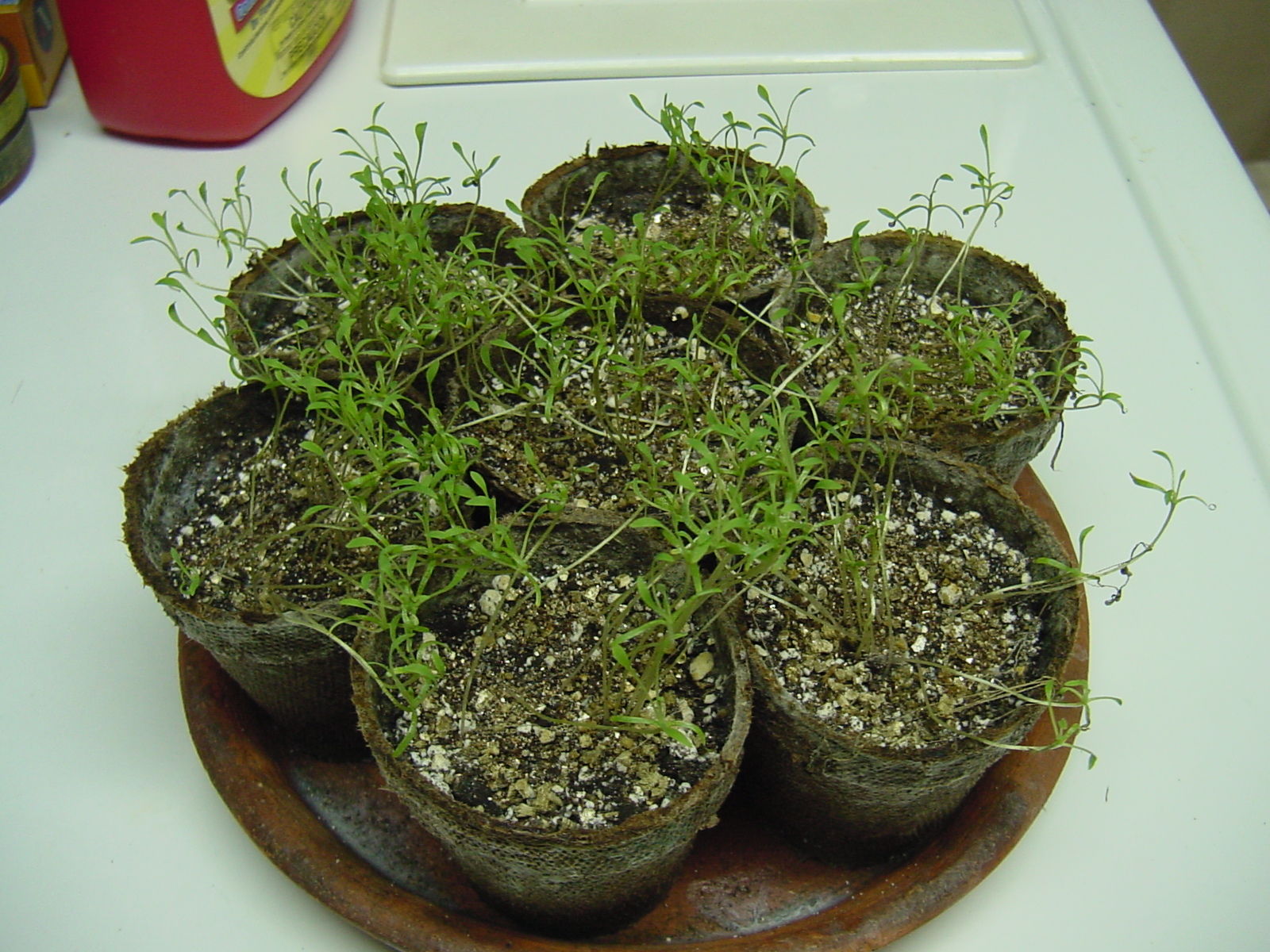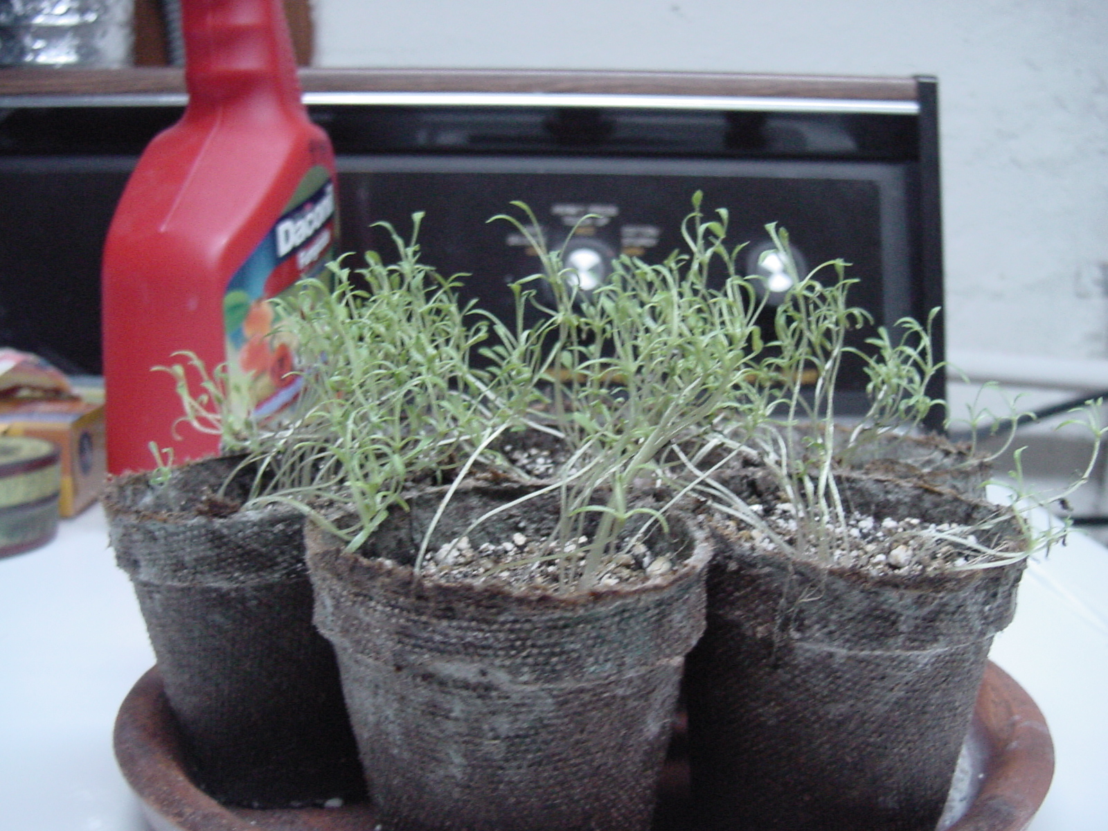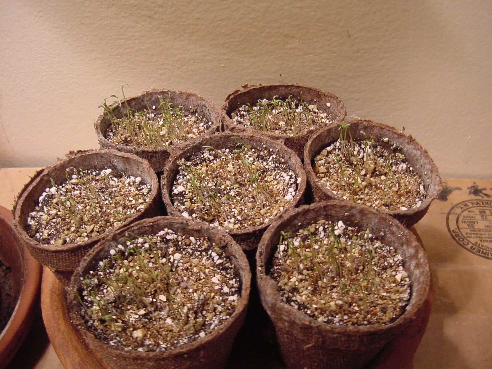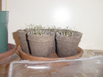 Then I put a pinch of poppy seeds in each pot covering w/ a VERY thin layer of vermiculite...