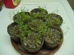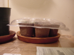 Then I poured a little water in the collecting tray, covered w/ the clear plastic tray for mini green house effect (after I cleaned it off from doing the soil mixture), and placed them in my growing area...