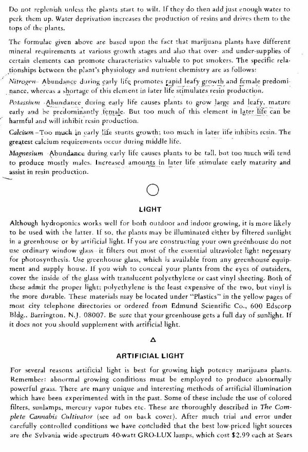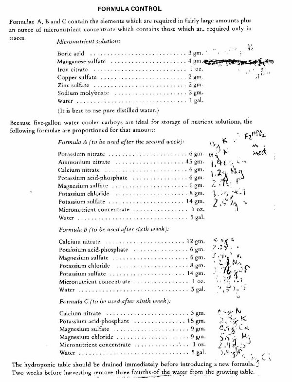 In hydroponics, minerial elements are provided by the use of minerial salts. These may be either naturally derived or manmade, but most have been purified and processed so that they are water soluble and in a form that can be used by plants. Many start out as mined minerials or naturally concentrated deposits that are dissolved and processed into compounds with a definite molecular structure and composition. In the refining process, these minerial salts are usually purified to remove heavy metal contaminants and toxic substances that could harm plants or people. since the chemical composition is precisely known, different minerial salts can be combined to forma balanced hydroponic nutrient. When dissolved in the proper proportions with good quaility water, a hydroponic nutrient solution can provide all of the elements needed for plant growth without soil. By its nature, the hydroponic methods eliminates much of the uncertainty and guesswork found in organic growing. Some adjustments are normally made for proper pH, controlling nutrient concentrations (parts per million) and to maintain balance between the nutrients provided. These are usually easy adjustments and within control of the grower. In a well-built hydroponic installation, all conditions are controllable so optimum plant growth can be achieved, even surpassing nature.