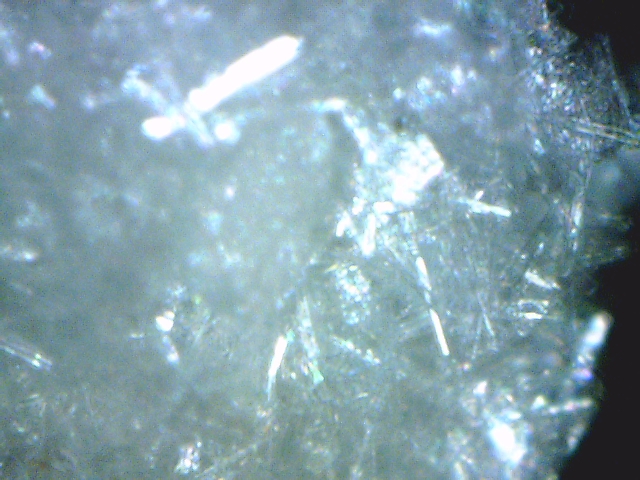 Mescaline sulfate can be distinguished by the structure of its crystals. These are approximately 1/4" long and look like fine needles or shards of glass. The amount of Mescaline needed for a high can fill two double 0 gelatin caps. Those who claim they've had Mescaline in tiny microdot pills, or as a white powder in a capsule where only 1/8th of a gram produced a powerful experience, have been given something other than real Mescaline . Another form of Mescaline which I've never tried, Mescaline hydrochloride, is said to be about 25% more potent than Mescaline sulfate.