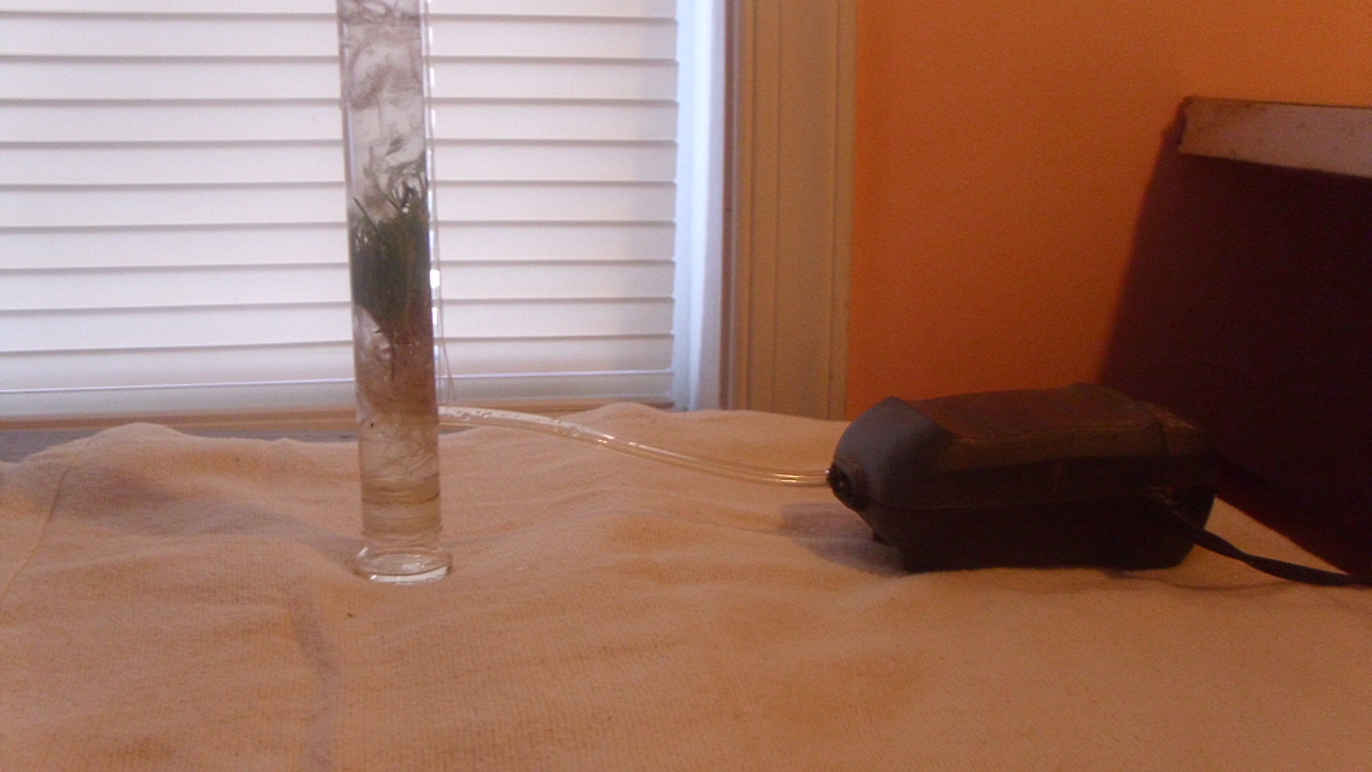 You can see the simplicity of my micro "Bioreactor" as nothing more then an aireated tube filled with water and at the moment a Rather crude but if I didn't start somewhere I would never start. My main goal is to keep this little clump of grass alive for a long enough time without infection to prove its ability to run for extended period of time. This at the moment is nothing more then a form of hydroponic growing equipment and I think all I will feed it is a few ML of Suger solution every couple days since I don't think for these test it needs much more. In all honesty im trying to feed any bacteria present more then im trying to feed the grass because I want to see what kind of hold Fungi or bacteria might take in such an experiment. The initial weight of the grass is 2.3 grams and I will measure it after im done as well to see if it grows any at all thruout the course of the experiment. I do not have much faith in the experiment at the time but my main goal is to proceed to the stabalization of a culture of Rootbark from a sassafrass trees. I don't think a Hairy root culture is fully needed to test what I had in mind since the reaction need only a single enzyme in the conversion of Eugenol and not a multistep process that many chemicals needs involving the entire root.The lump of grass seen in the picture was kept alive under water for over 2 weeks and it was not until I stupidly refilled it with tap water when the solution started to evaporate did the grass die. Keeping the roots alive after getting it started I think would be fairly simple in a home setup.