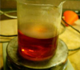 The solution was heated to 95°C and after 90 minutes of heating the orange solution was allowed to cool down.