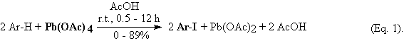 In our first work [2] we carried out the oxidative aromatic iodination of eleven highly activated arenes and heterocycles in the presence of excess (10%) pure Pb(OAc)4 in glacial acetic acid, used as the inexpensive solvent of choice: