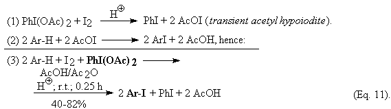 2Ar-H + 2AcOI ® 2ArI + 2AcOH, hence: