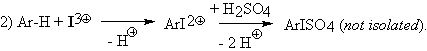 2Ar-H + 2I3+ + 2H2SO4 ® 2ArISO4 + 4H+, hence: