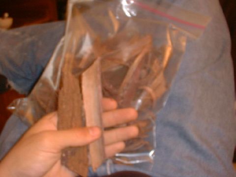 The bark must be prepared for extraction, a simple but effective method that can be used is to simply pull strips of fibres off using fingernails (or assisted with a pocket knife) so that thin pieces are removed - this must be done when it is still fresh. The bark can be cut up into small pieces and put through a blender or coffee grinder, this is best done when dry, though cutting it up when dry can be difficult, it would be best done when still fresh (it is best to ensure cutting goes from the inside of the bark to the outside because the inner fibres are long and resistant to being cut). If bulk quantities are being worked with (like 10kg or more) a mulcher can be very effective. A small garden shredder is very helpful in any case, and for anyone intending to powderise the material, it needs to be broken into small pieces before putting into a blender.