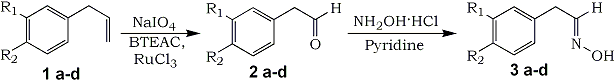 Recently, we have reported the safe and facile oxidation of β-pinene to produce nopinone using RuCl3-NaIO4-PTC (phase transfer catalyst) system17. As an extension of this oxidation system, we now report the synthesis of 3,4-dimethoxyphenylacetaldehyde 2a from methyleugenol 1a.