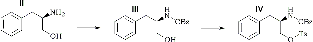 A mixture, of 1.5 g (9.9 mmoles) of II and 1.12 g (10.6 mmoles) of sodium carbonate in 25 ml of acetone and 25 ml of water was stirred at room temperature, and 1.5 ml (10.5 mmoles) of benzyl chloroformate was added. The reaction mixture was stirred for 3.0 hr, diluted with 50 ml of water, and acidified (to pH 2) with concentrated hydrochloric acid. The mixture was shaken with 300 ml of ethyl acetate, and the organic phase was washed with 100 ml of saturated aqueous sodium chloride. After drying (magnesium sulfate), the filtered organic solution was concentrated in vacuo. The product was crystallized from ethyl acetate-hexane, 1.5 g (55%), mp 91-92°C, [α]D 41.3° (c 1.0, ethanol).
