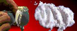 Heroin is a "pro-drug." It has little nervous-system activity itself, but is rapidly metablized to the active drugs morphine and 6-monoacetylmorphine. The advantage of heroin over morphine, both as an analgesic and as a euphoriant, lies in its high lipid solubility. Compared to morphine, heroin achieves about three times more blood-brain barrier penetration (7). Thus it may be delivered at one third the volume for the same effect, which may spare the user/patient much histamine-related discomfort and other side-effects characteristic of large doses of opiate drugs. Heroin is used licitly in only a few countries, including the United Kingdom and Canada. Illicitly, an estimated 4000 metric tons of opium were produced in 1995 (8), destined for conversion to 300 to 400 metric tons of heroin. The majority of this opium grown and processed in Burma (2000 to 2500 metric tons) and Afghanistan (1000 to 2000 metric tons). Other major growers include Thailand, Laos, Pakistan, Colombia and Mexico. Generally speaking, Southeast Asian heroin is marketed worldwide, Southwest Asian product is found in Europe, and Latin American heroin comes solely to the U.S. (4).