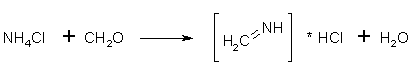 In your 500mL RBFlask: Set up for distillation (not vacuum). In the distillation flask (your 500mL RBFlask) put: 108g of NH4Cl, 120g Paraformaldehyde (molecular ratio 1:2, remember this when scaling up!) and 320ml of water and several boiling stones. Start heating very SLOWLY. Remember to turn on the water in the condenser!