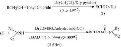 It was observed14-16, that presence of a phase transfer catalyst in the alkylation of secondary amines with various alkyl halides led to the formation of carbamates.