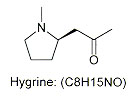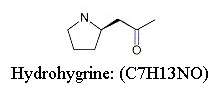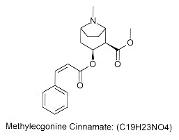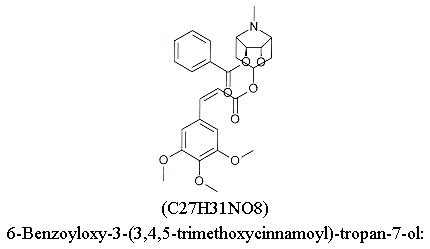 Ecgonine Isatropate: (C18H21NO4), Tropine Isatropate: (C17H21NO2), Hydrohygrine: (C7H13NO)