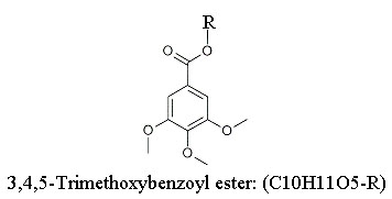 Trimethoxybenzoyl esters: (C10H11O5-R).