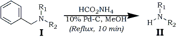 Our deprotection method for N-benzyl amines which gives the free amine directly using ammonium formate is shown in Scheme 1 (R1 = H/CH3; R2 = Alkyl/Aryl).