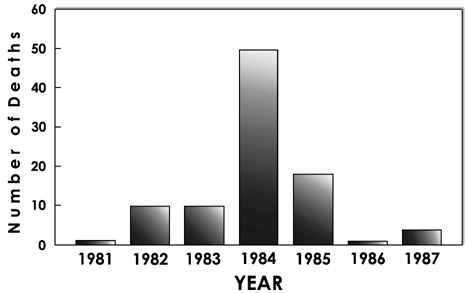 To date, we have identified over 10 illicit fentanyl analogs and 110 fentanyl overdose deaths. All deaths occurred in California with the exception of 2 cases in Portland, Oregon (1983), 1 case in Tempe, Arizona (1980), and 1 case in Reno, Nevada (1987). A preliminary review of the investigation reports and coroners findings show that the fentanyl overdose victims typically were young (mean age 30, range 18 to 49), male (74% male, 26% female), employed as a blue-collar worker, and found at home (usually in the bathroom or bedroom) by family or friends. Most often they had a prior history of heroin use, but often there were claims by the family and friends that the individual had not been abusing drugs recently. Generally, no other drugs were found; however, if another drug was present, it was invariably ethanol, most often present at the 0.1% level. Thus the profile of the typical fentanyl overdose victim suggests that the drugs are not distributed within any localized geographical area or to any particular ethnic or age group. Instead, the fentanyls seem to be distributed rather uniformly throughout the addict population. However, the geographic distribution of the fentanyl deaths is somewhat curious. Most deaths occurred in suburban, even rural areas, rather than large cities. There has never been a illicit fentanyl death in the city of Los Angeles and only 2 deaths in San Francisco. This unusual distribution remains unexplained but is not the result of underreporting because our laboratory routinely examines body fluids submitted by coroners in these two cities.