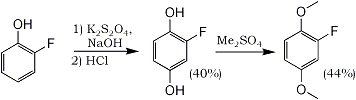 An alternative route1 to 2,5-dimethoxyfluorobenzene involves diazotization of 2,5-dimethoxyaniline in the presence of aqueous fluoroboric acid, followed by pyrolysis of the precipitated diazonium fluoroborate salt, but unfortunately that method only gives ~10% yield.