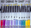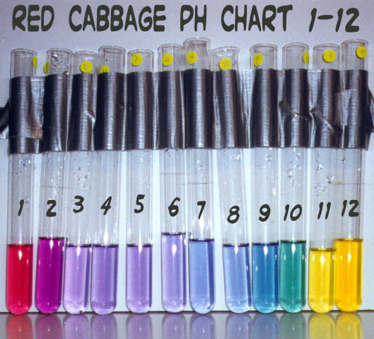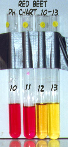 from red cabbage and red beet. Red cabbage juice will function over a wide pH range, from as low as pH 1 up to pH 12. Red beet juice