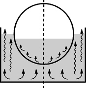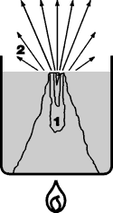 When a vessel is heated from below, the vessel wall becomes hot first and then passes on the heat to the vessel contents. The heated liquid (e.g. water) rises and the colder liquid sinks to the bottom of the vessel. This is called convection.