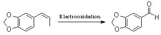 Isosafrole Glycol (3a) (100 mg, 0.51 mmol) dissolved in benzene (6 mL) and 0.5% aqueous NaOH (4 mL) was electrolyzed at 65°C (18 mA for 3 h, 4 F/mol) in a similar manner as described above, affording 1 (76 mg, 99%) as colorless crystals whose spectral and TLC data were consistent with those of an authentic sample.
