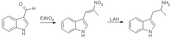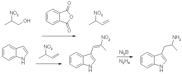 In this article, nitromethane, nitroethane, 1-nitropropane and ethyl nitroacetate are alkylated with gramine. The nitroethane derivative gives alpha-methyltryptamine on reduction. The procedures are described for 1-nitropropane, but is applicable on the whole series of nitro compounds.