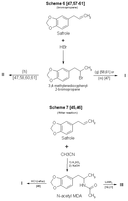 Reactions Using safrole as a precursor in synthesis of MDA and some analogs