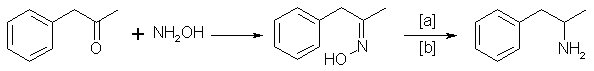Benzyl methyl ketone reacts with hydroxylamine to give the oxime, which can be hydrogenated to give the amphetamine:14