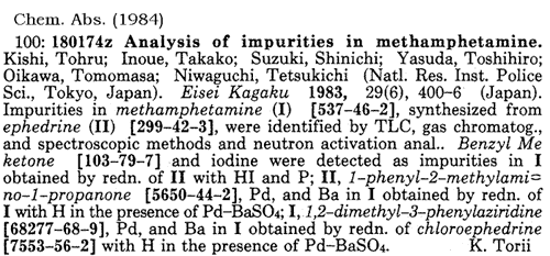 | Table 4. Impurities found in methamphetamine synthesized by the reductive amination of P2P |