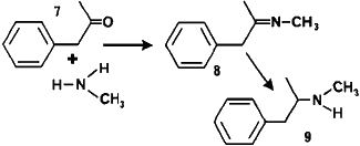 If the resulting imines, or enamines, are subsequently reduced, then the overall reaction gives more complex amines. This general reaction is used in many methods found in clandestine laboratories such as methamphetamine, the 3,4-methylenedioxyamphetamines, as well as the fentanyls.