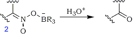 The formation of the nitronate intermediate, 2, affords an entry into carbonyl compounds. In essence, it constitutes a modified Nef reaction upon hydrolysis. We were able to convert a series of α,β-unsaturated nitroalkenes to the corresponding ketones by reducing them with trialkylborohydrides and then hydrolyzing the corresponding nitronates11 (Eq 6). Carbonyl compounds can also be prepared by first reducing the nitroalkenes to oximes (vide infra), followed by hydrolysis39,40.