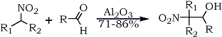 Polymer supported reagents have also been used in the nitroaldol addition reactions. For example chromatographic alumina (Brockmann activity I) catalyzes the preparation of polyfunctional and labile 2-nitroalkanols in a mild and convenient heterogeneous reaction from nitroalkanes and aliphatic aldehydes in the absence of solvent59 (Eq. 8).