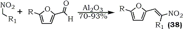 Under similar conditions, 1-(2-furyl)-2-nitroalk-1-enes (38) are obtained directly60 (Eq. 9).