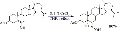 It has been reported that a few steroidal nitroalkenes137 produce α-hydroxy oximes upon reduction with chromium(II)chloride77,138,139 (Eq. 22).