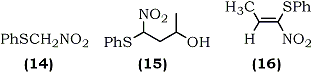 1-Nitro-1-phenylthioalkenes (18) were also recently prepared by condensation of phenylthionitromethane (14) with aldehydes using potassium t-butoxide as a catalyst67 (Eq. 4). The resulting isomeric mixture of nitroalcohols (17) was dehydrated by methanesulfonyl chloride and trimethylamine using Yoshikoshi's procedure.65 Barrett and co-workers have demonstrated the application of (18) in the synthesis of S-phenyl thioesters67 and bicyclic lactams.68