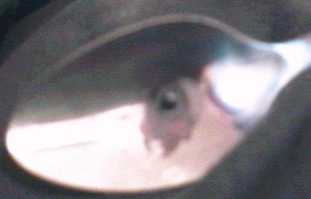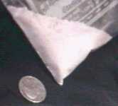 A small bit of the powder was put on this spoon. The spoon was put directly onto a hot stove where it quickly lost most of its volume as a gas that tickled the back of the throat triggering a cough reflex. A small amount of carbonized crap remained.