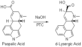 The process is generally carried out in an inert solvent, such as water or a short-chain aliphatic alcohol (methanol or ethanol, for example), or in a mixture of these solvents, at a temperature preferably between 25-35°C, and then letting the reaction progress for 24 hours. The quantity of tetraalkylammonium hydroxide is generally from 1.5-10 mol and preferably 2.5 mol per mole of paspalic acid. When use is made of a mixture of tetraalkylammonium hydroxide and alkali metal hydroxide, the quantity of tetraalkylammonium hydroxide is generally from 0.5-2 mol, preferably 1.5 mol, and the quantity of alkali metal hydroxide is generally from 4.5-0.5 mol, preferably 1 mol, per mole of paspalic acid. Still more preferably, the process is carried out in an aqueous medium at a temperature of from 28-32°C., either in the presence of 2.5 mol of tetrabutylammonium hydroxide for one mole of paspalic acid or in the presence of 1.5 mol of tetrabutylammonium hydroxide and of 1 mol of sodium hydroxide for one mole of paspalic acid.